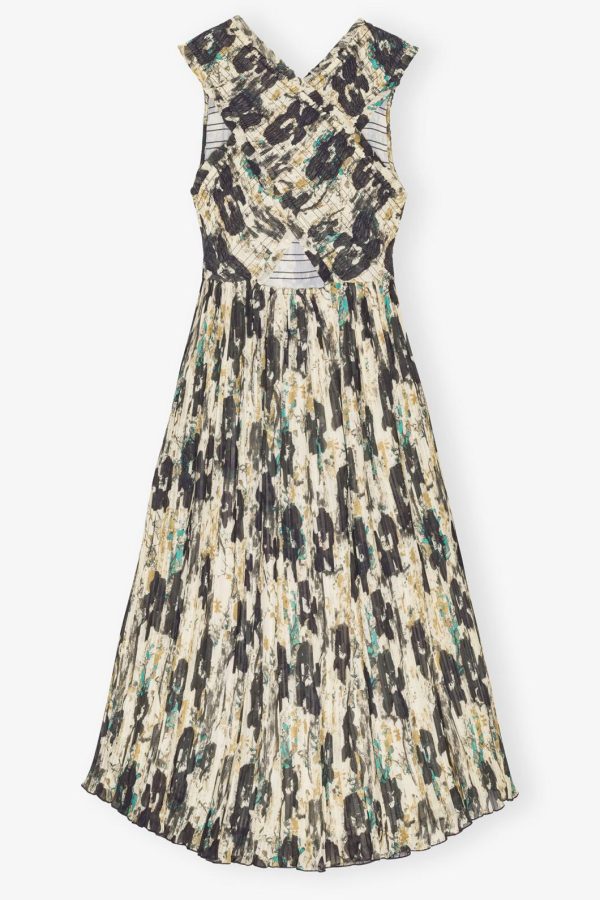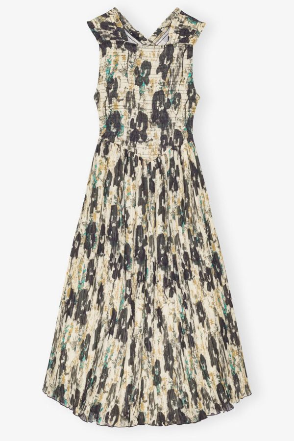 This Printed Pleats Smock Midi Straps Dress features a straight neckline with smock straps, cut-out detail at the back and a smock bodice.