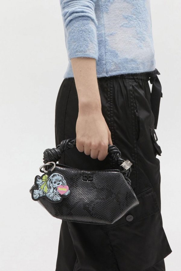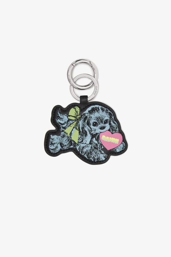 This keyring is designed in the shape of a dog and features a silver-tone ring and clasp and a GANNI logo.