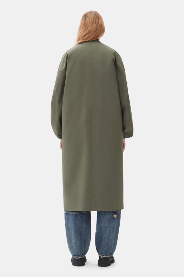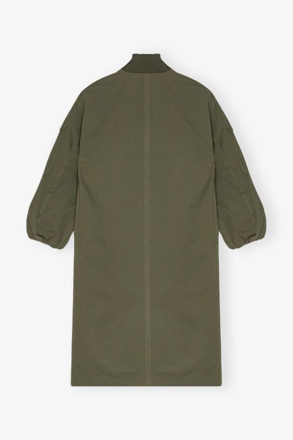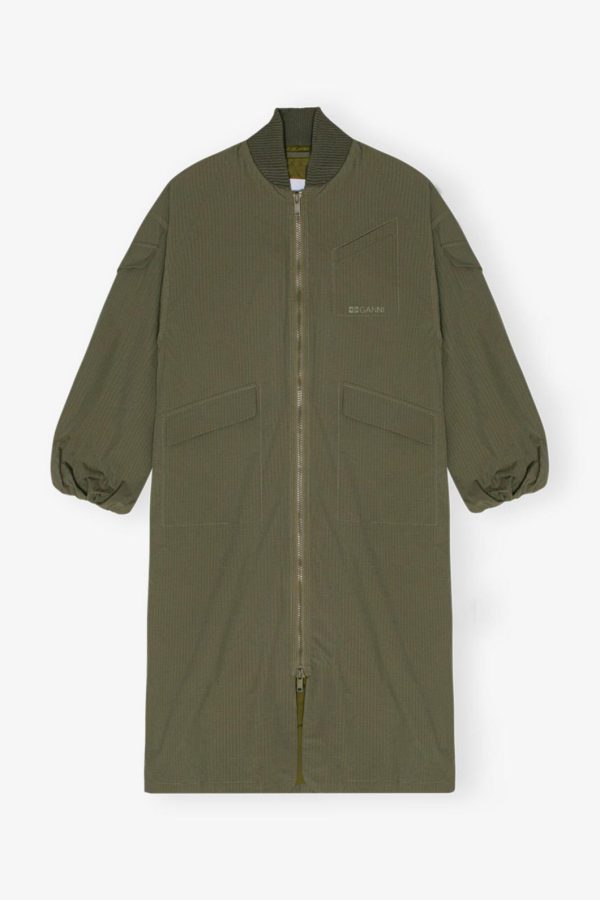 GANNI Beetle Green Tech Seersucker Oversized Shell Coat | Women Coats & Jackets