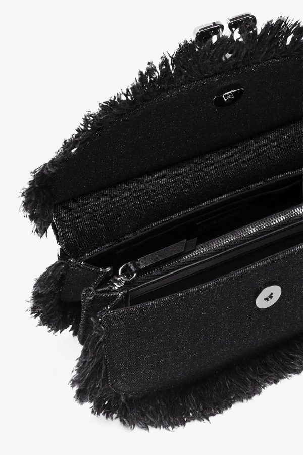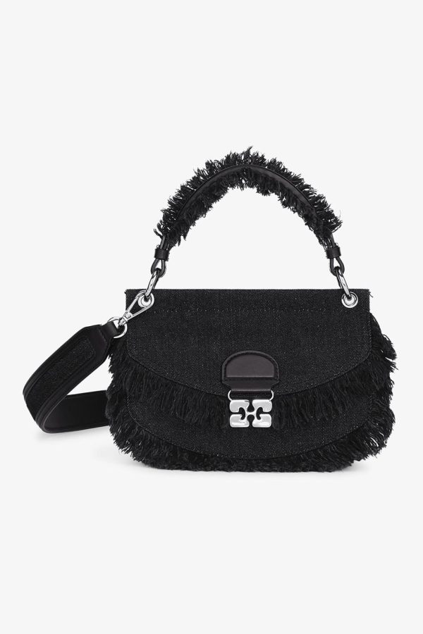 This bag features a structured silhouette, a top handle and an adjustable and removable shoulder strap. The bag has a magnetic closure with the signature GANNI Butterfly clasp in silver-tone, a slip pocket and three main compartments.