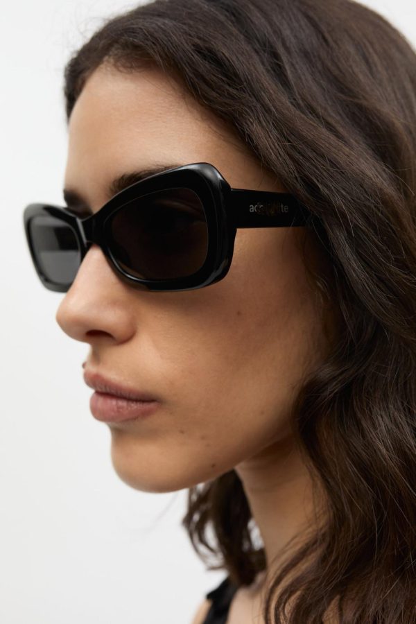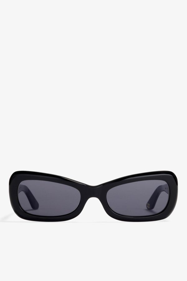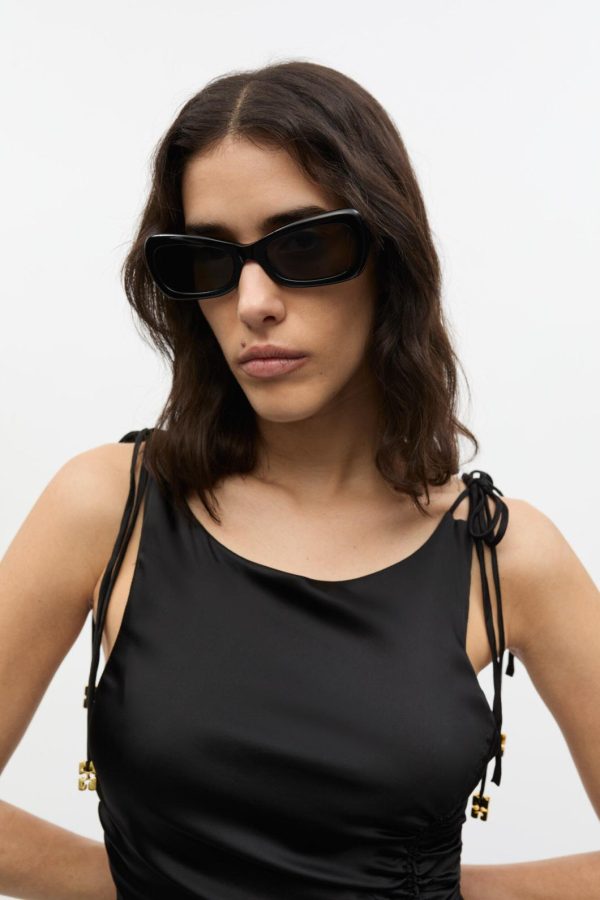 GANNI x Ace & Tate returns with three limited-edition sunglasses silhouettes designed to frame every side of your personality. These sunglasses feature a black acetate frame in a rectangular silhouette. The tinted lenses provide UV protection and include logo detailing on the temples and middle end pieces.