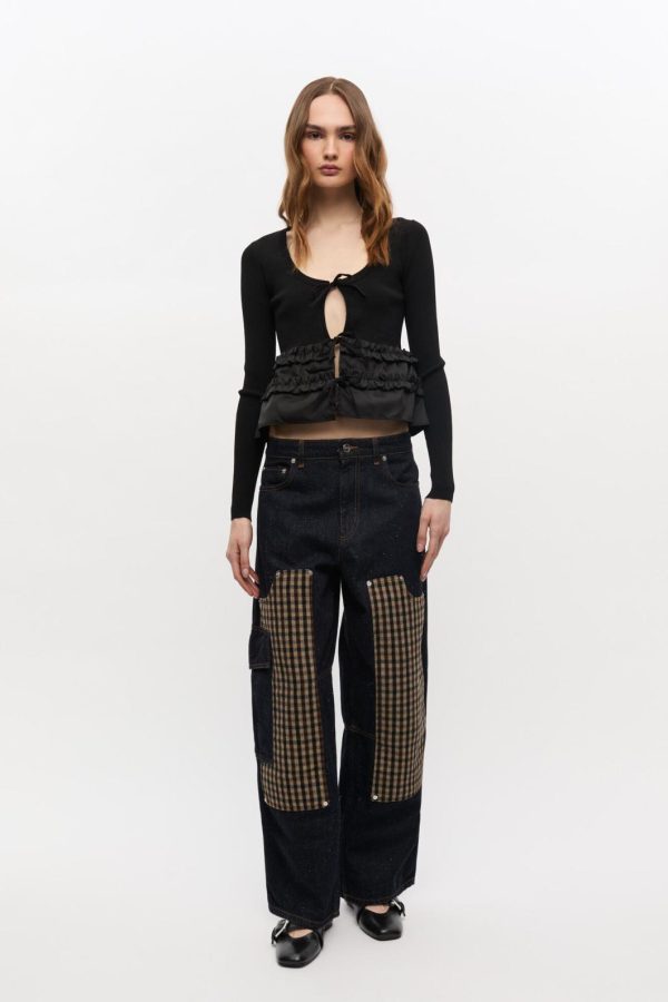 - Ruffle hem detail in contrast fabric