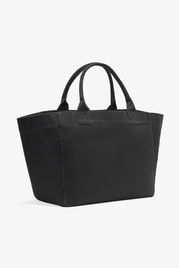 This stylish tote bag features convenient top handles, a spacious main compartment, and the iconic GANNI logo with the uplifting ‘Have a nice day! Please recycle’ message.