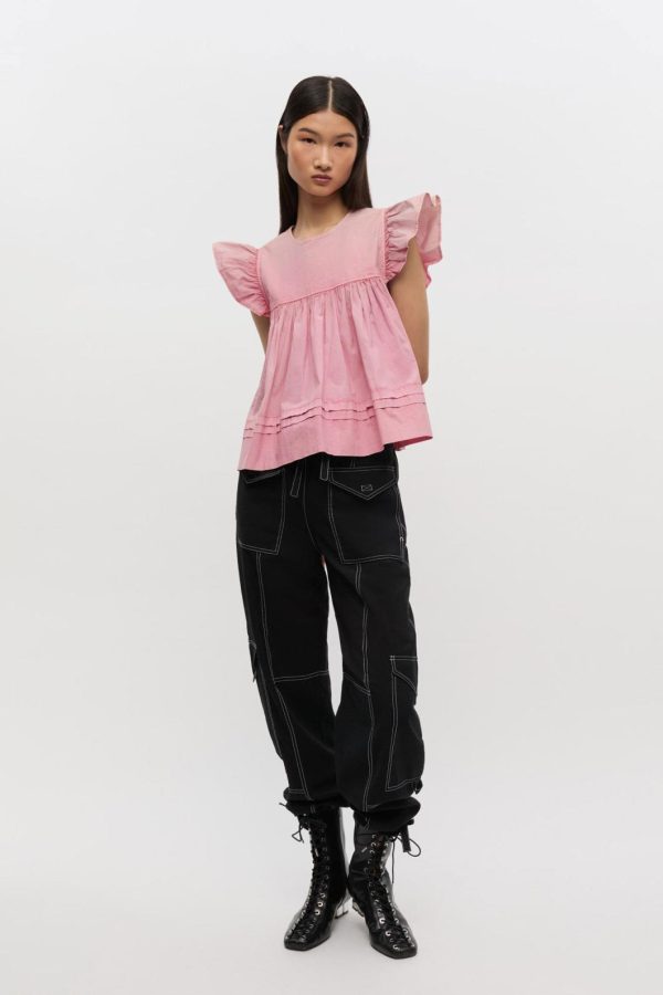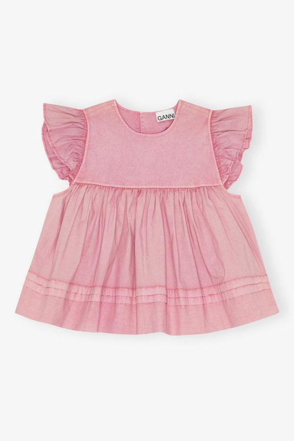 GANNI Bleached Mauve Pink Washed Cotton Top | Women Tops