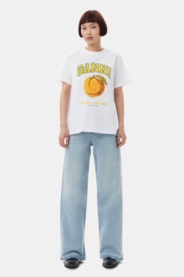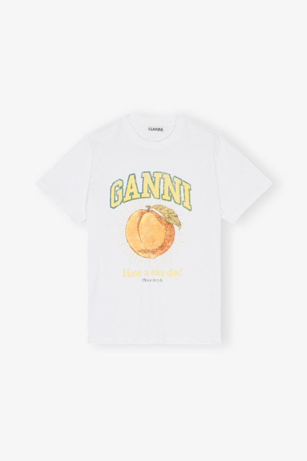 GANNI Bright White Relaxed Peach T-shirt | Women Tops