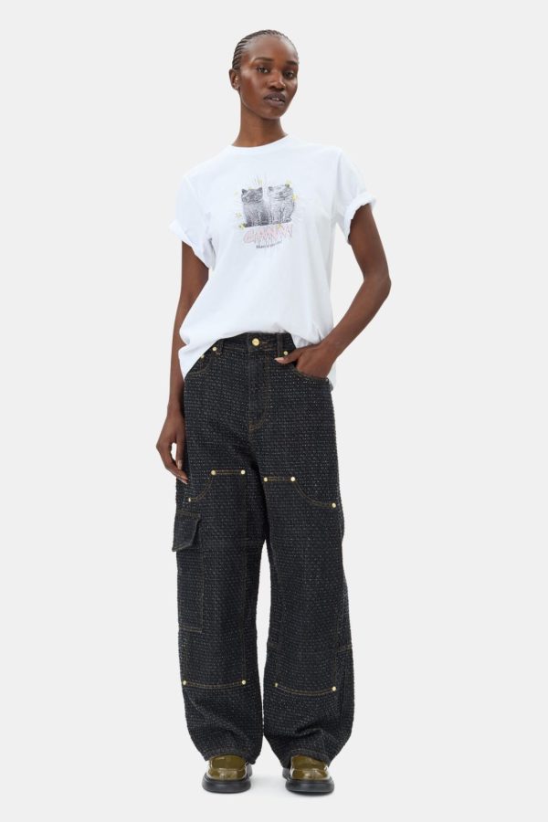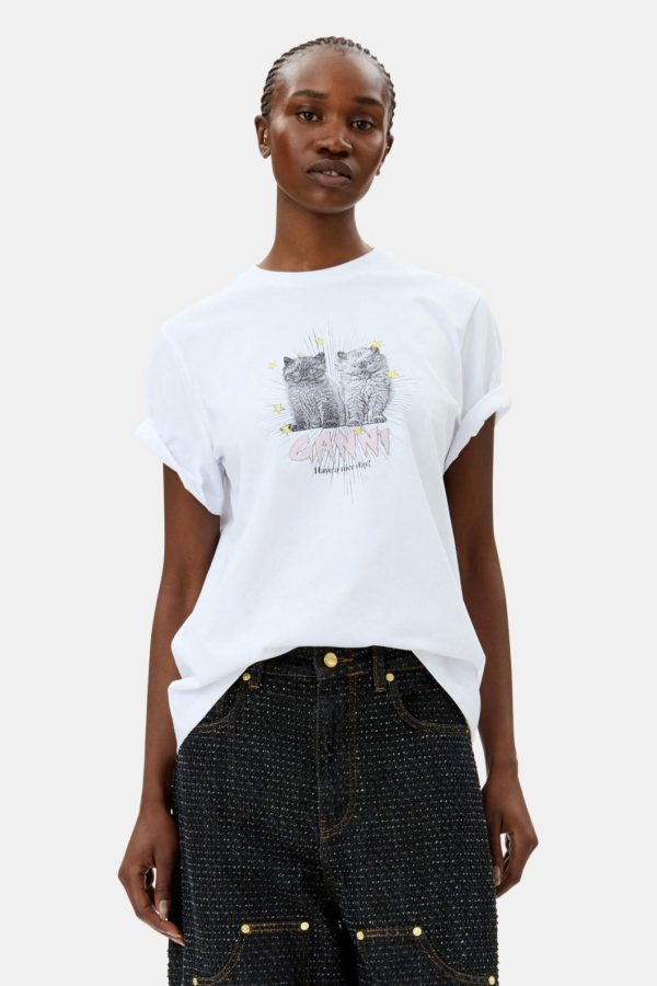 GANNI Bright White White Basic Jersey Kittens Relaxed T-shirt | Women Tops