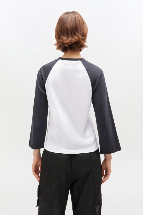 This T-shirt features a round neckline, three-quarter sleeves, and a GANNI logo. The T-shirt has a Kitty print graphic and a ‘Have a nice day! Please recycle’ message.