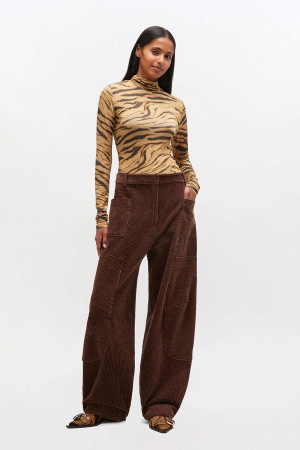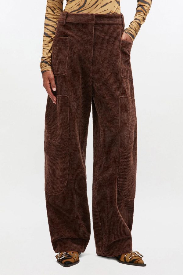 These trousers feature a feature a hook-and-eye closure, belt loops and 3 pockets.