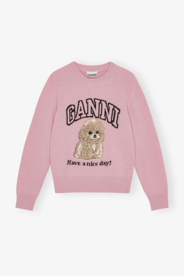 This stylish jumper features a classic round neckline with premium ribbed detailing at the neckline, cuffs, and hem. The eye-catching design showcases a playful animal print with an adorable poodle graphic and an uplifting ‘Have a nice day! Please recycle!’ message that adds personality to your wardrobe.