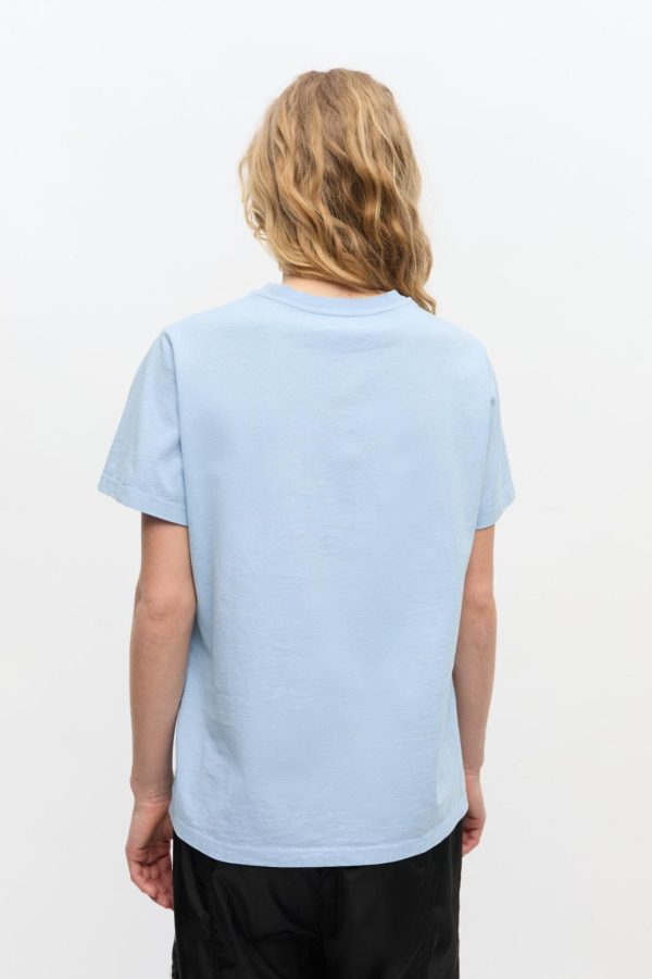 This T-shirt features a round neckline, short sleeves, and a GANNI logo. The T-shirt has a animal print graphic with a dog, cat, and rabbit on the front, and a ‘Have a nice day! Please recycle!’ message.