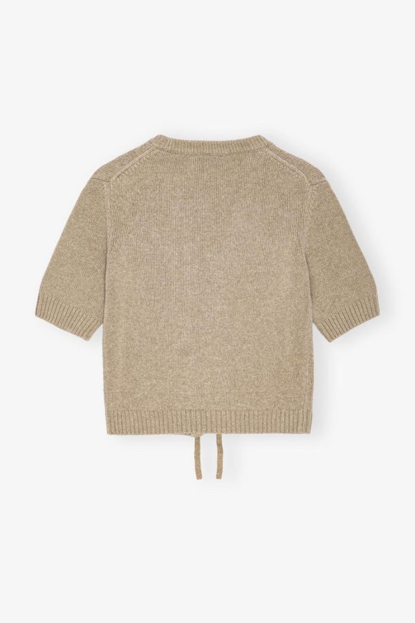 GANNI Dusty Olive Brown Future Wool Mix Short Sleeve Cardigan | Women Knitwear
