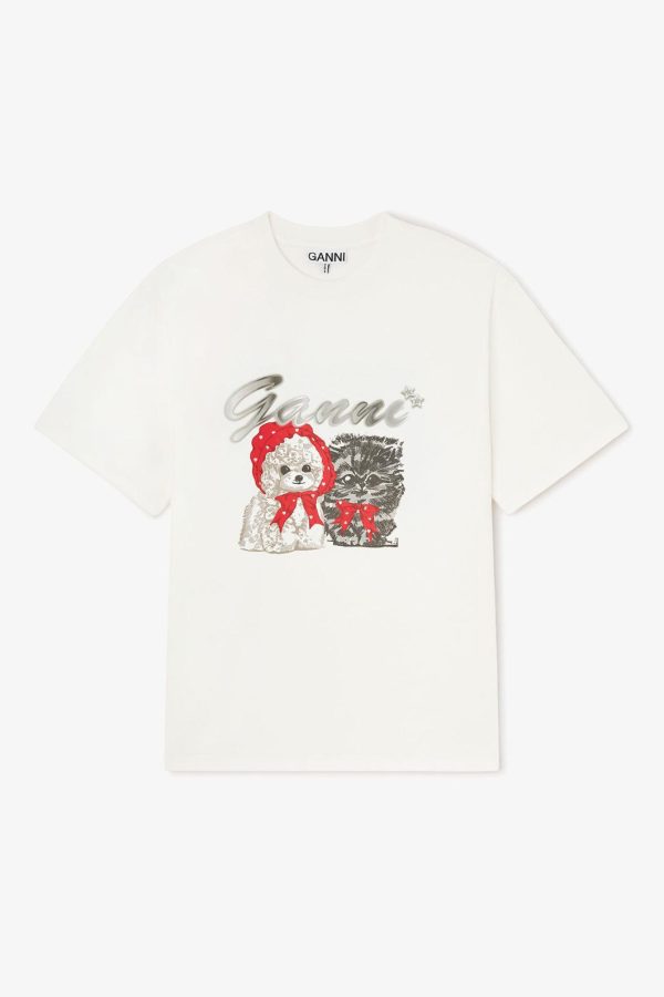 This T-shirt features a round neckline, short sleeves and a GANNI logo. The T-shirt has a animal print graphic on the front and back.