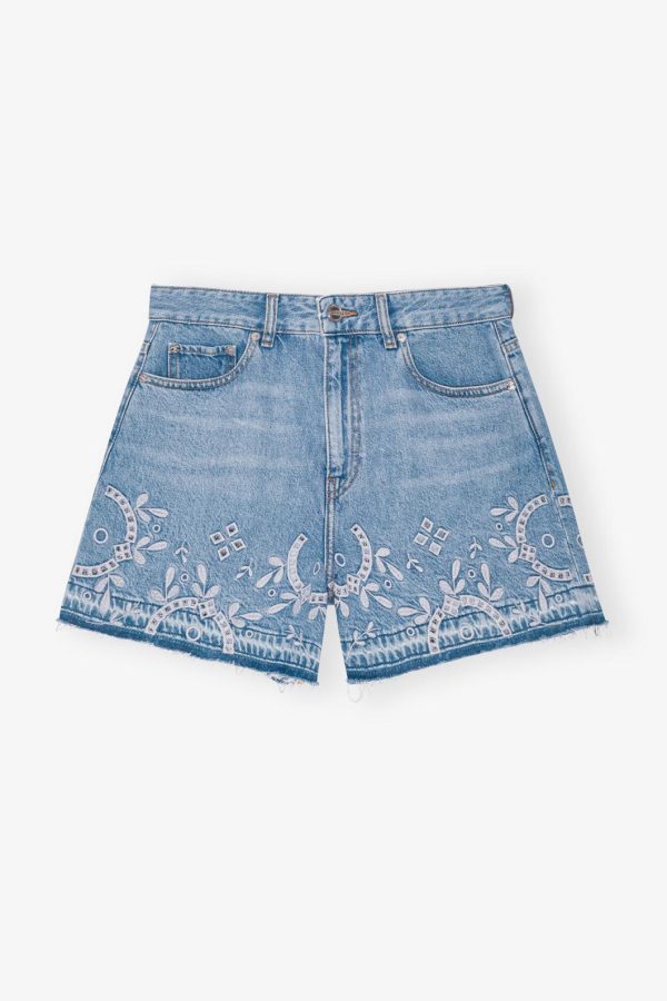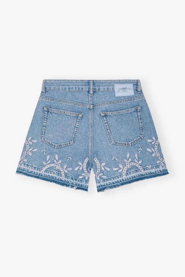 GANNI Light Blue Stone Broderie Anglaise Shorts | Women Trousers & Shorts