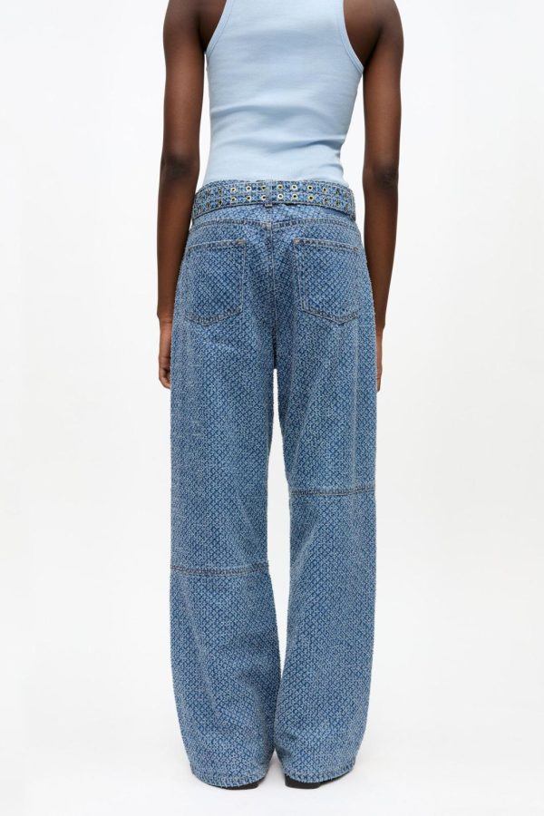 Mid-rise boyfriend jeans with a dropped crotch and a loose, straight leg. Full length with a relaxed fit throughout. Made from rigid denim for structure and durability, delivering a slouchy, laid-back silhouette.
