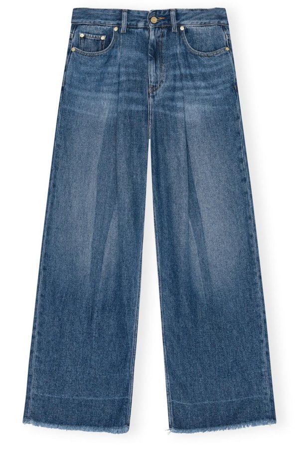These jeans in denim feature a zip and button closure, 5 pockets, belt loops, GANNI logo patch and a pleated front detail.