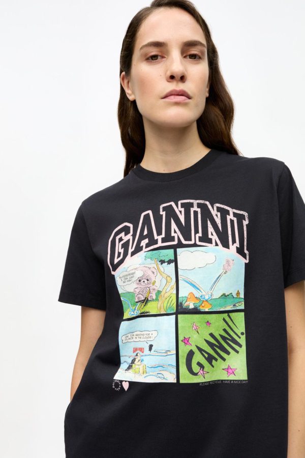 GANNI Phantom Black Basic Jersey Teddy Relaxed T-shirt | Women Tops
