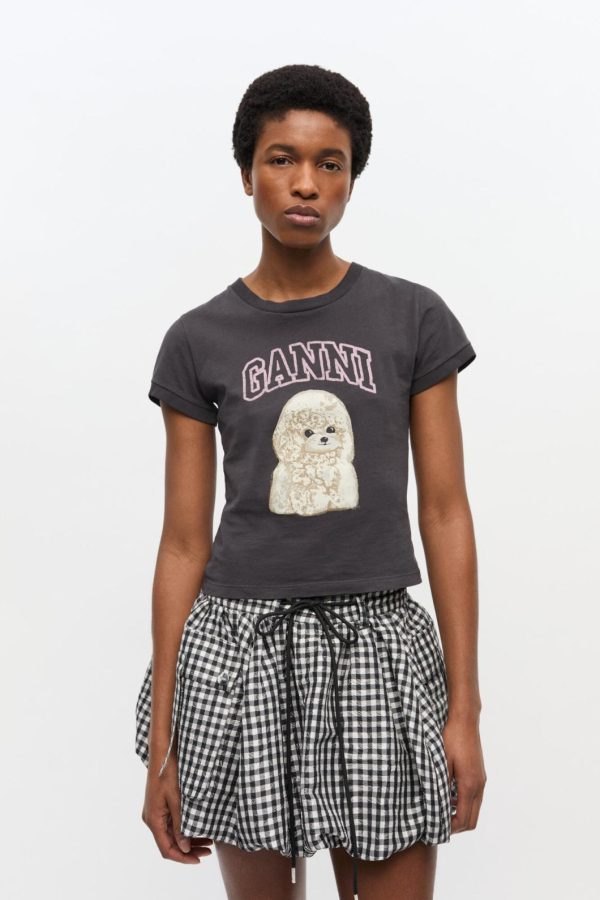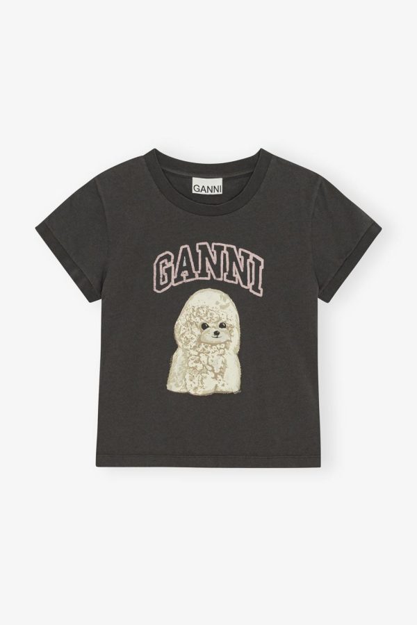 GANNI Phantom Black Poodle Cropped T-shirt | Women T-Shirts