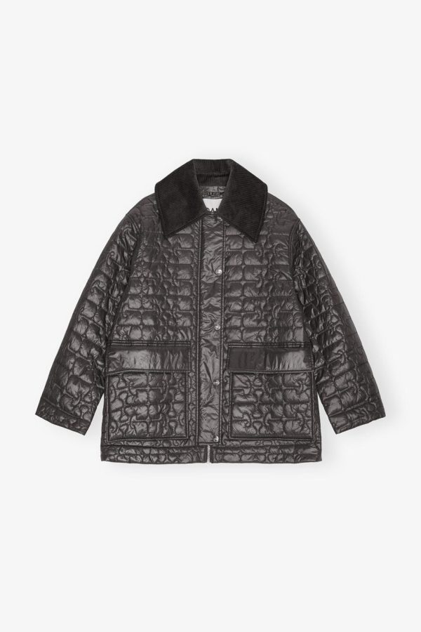 This Black Shiny Quilt Midi Jacket features a classic pointed collar, a button closure and two front pockets.