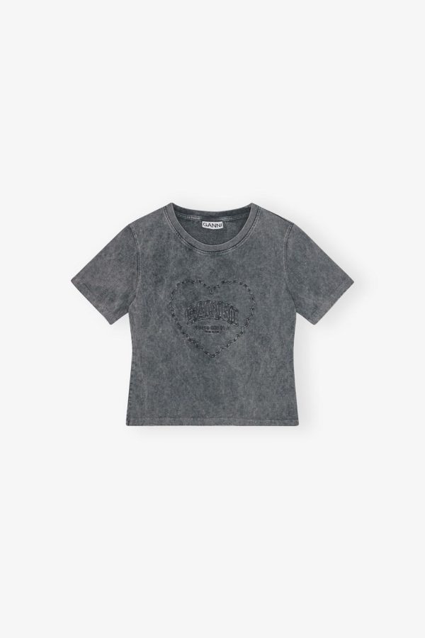 This T-shirt features a round neckline, short sleeves and an embroidered heart and GANNI logo.
