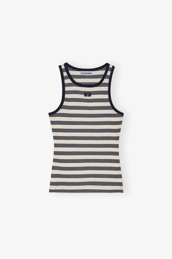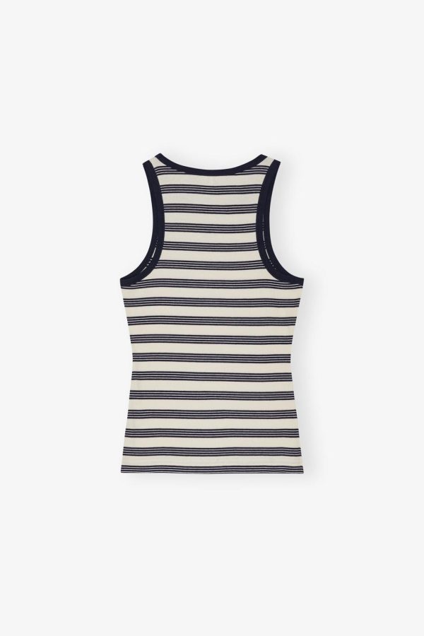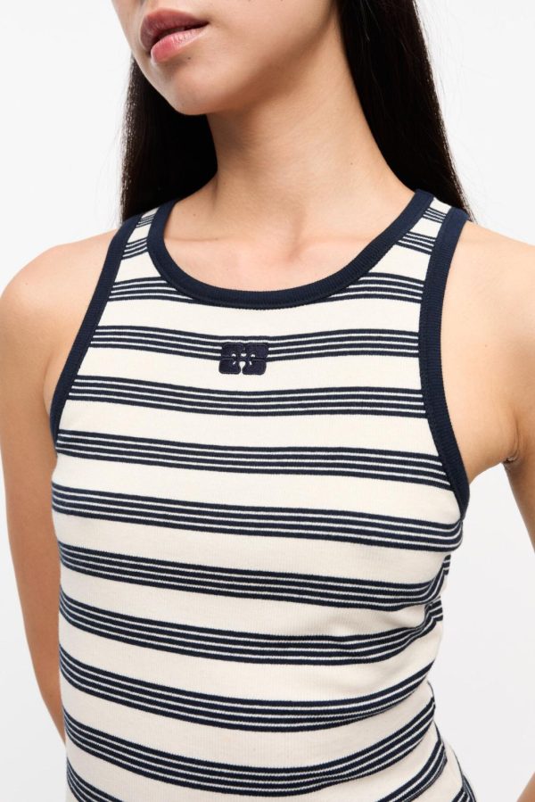 This Striped Soft Cotton Rib Tank Top features a racerback and a GANNI Butterfly logo.