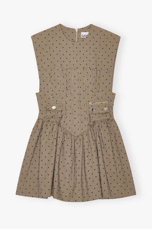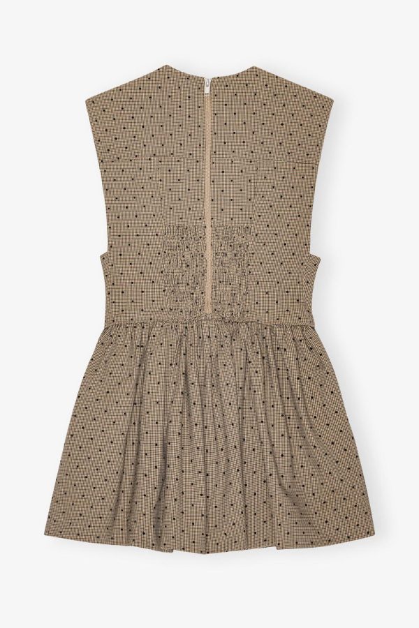 This Brown Flock Suiting Corset Mini Dress is a sleeveless dress with a round neckline, front pockets, a flared skirt, zip closure at the back and a smock back detail.