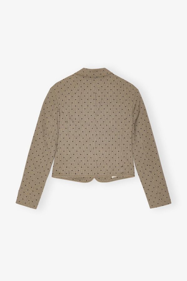 Crafted from a LENZING™ ECOVERO™ Viscose blend, this Flock Check Suiting Blazer is effortlessly refined yet versatile—a feminine take on classic tailoring. Designed in a slim fit with a cropped length, it features a check pattern with delicate flocked dots and decorative pockets, while the hemline is finished with a contrasting check pattern.