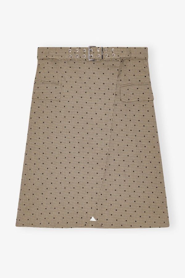 Crafted from a LENZING™ ECOVERO™ Viscose blend, this Flock Check Suiting Skirt is effortlessly refined yet versatile—a feminine take on classic tailoring. Designed in a casual-chic wrap silhouette, it features a check pattern with delicate flocked dots, decorative pockets, and a double-eyelet belt detail.
